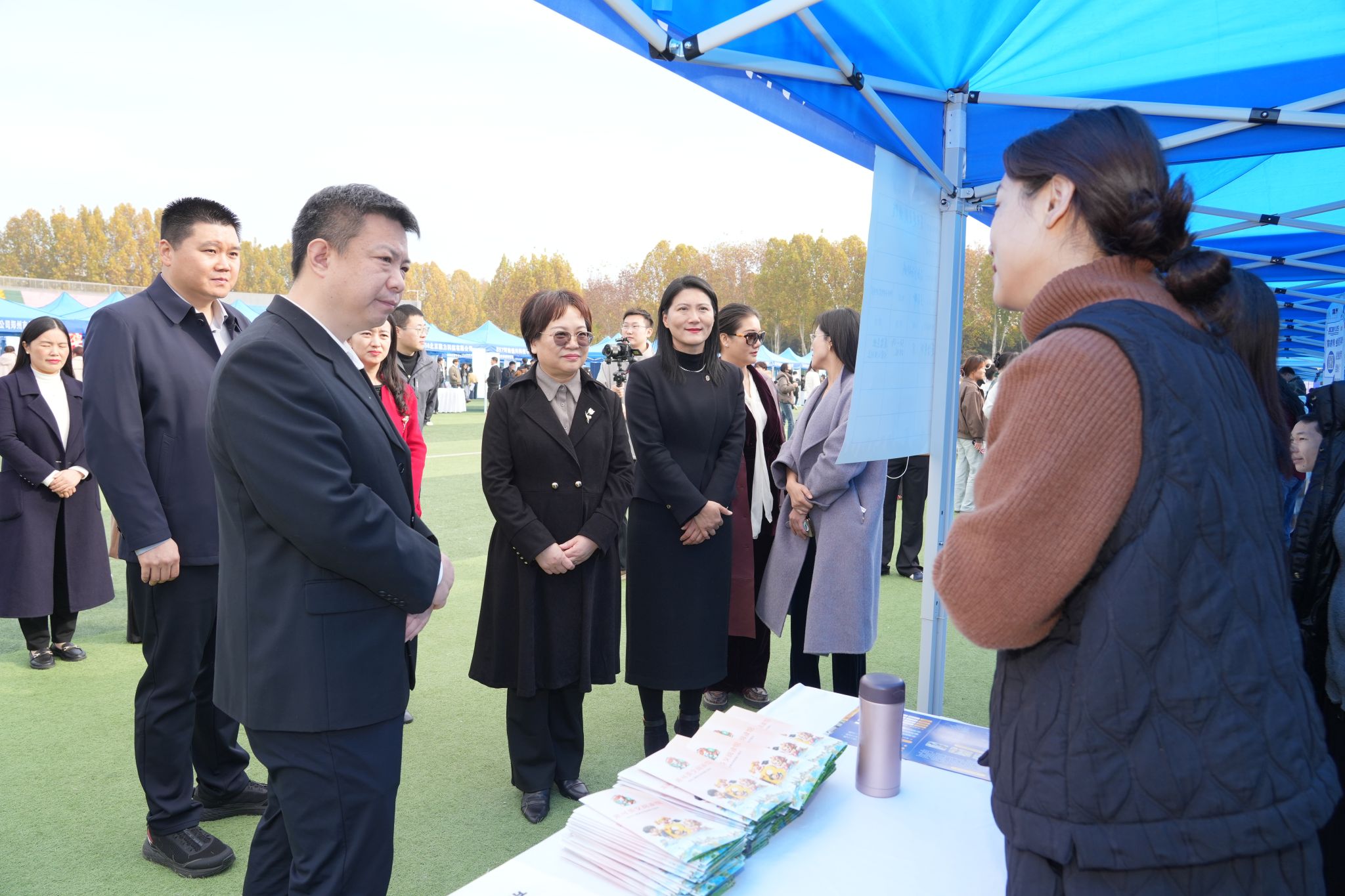 11月14日上午,“豫荐未来 青春启航”河南省女大学毕业生就业专场双选会暨郑州师范学院2026届毕业生秋季双选会在学校东校区运动场举行。河南省教育厅学生工作处处长李班、郑州师范学院校长张铟、河南省教育厅学生工作处四级调研员钱鹏俊、郑州市妇女联合会党组成员、副主席刘欣等出席活动。